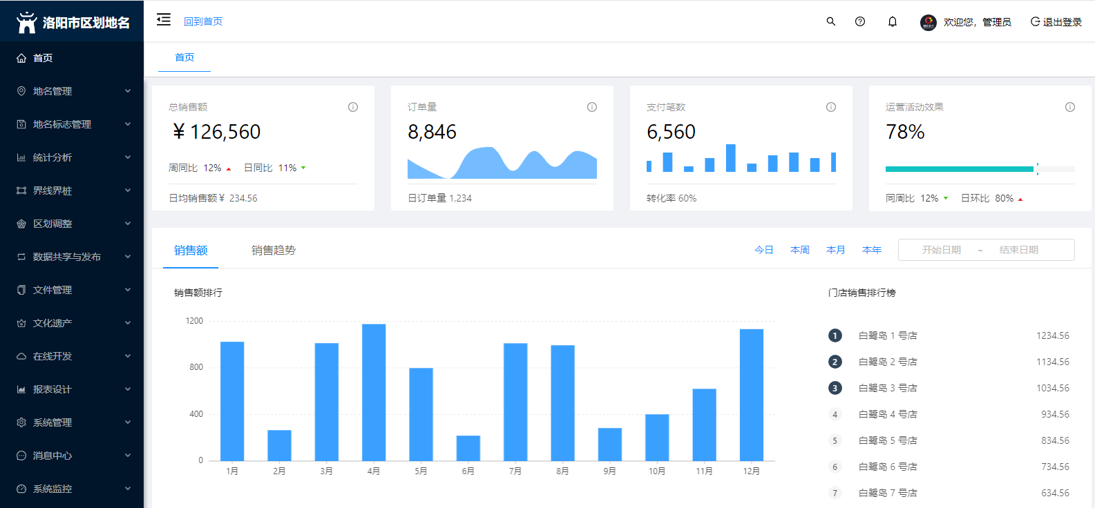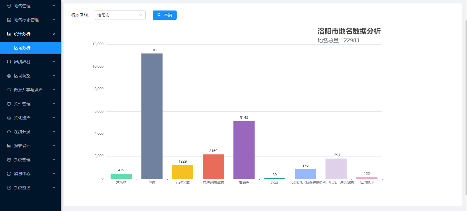 系統功能地名信息管理:地名管理、地名標志管理、統計分析界線界樁:界線管理、界樁管理、界線界樁展示、界樁管護人員區劃調整:區劃數據、區劃變更類別、區劃變更指標庫、區劃指標維護、區劃變更分析、年度區劃變更表、區劃變更事項批復文件、歷史文件上傳數據共享與發布:數據發布管理、數據共享與交換文件管理:文件創建、文件管理、文件共享文化遺產:文